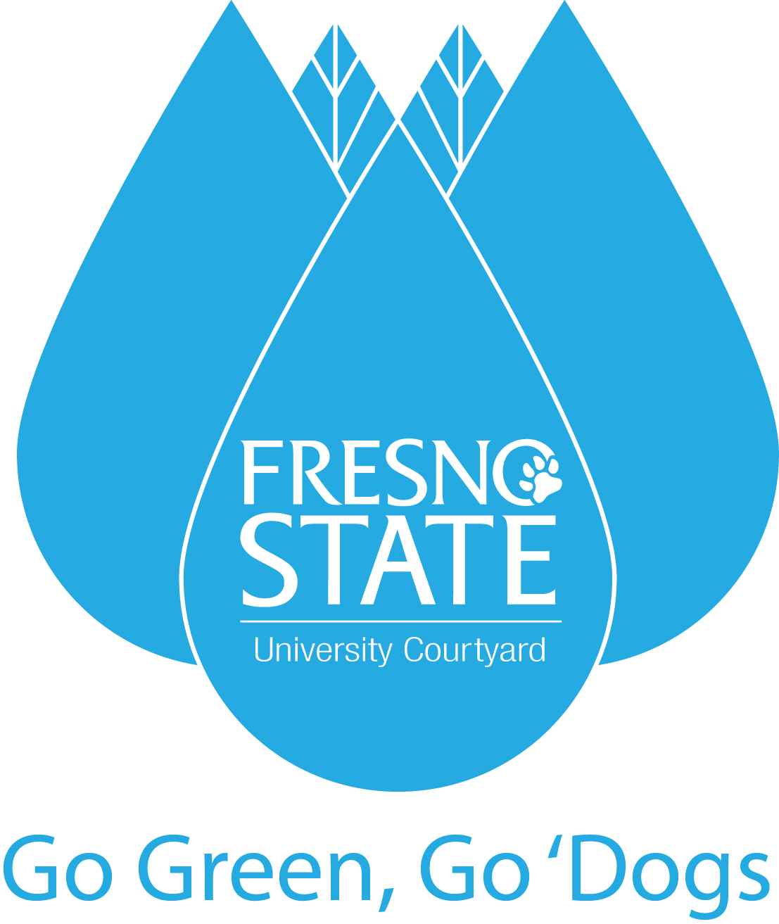 I created this logo while working at Fresno State's on campus student living. This logo got placed on water bottles to give to residents and as promotional items to hand around campus. My ideas was to fuse water and leafs to give a sense of saving water and the planet when using this reusable water bottle.